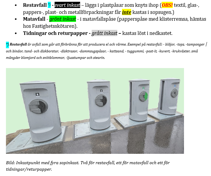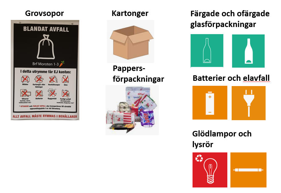 - grovsopor – behöver rymmas i behållarna,